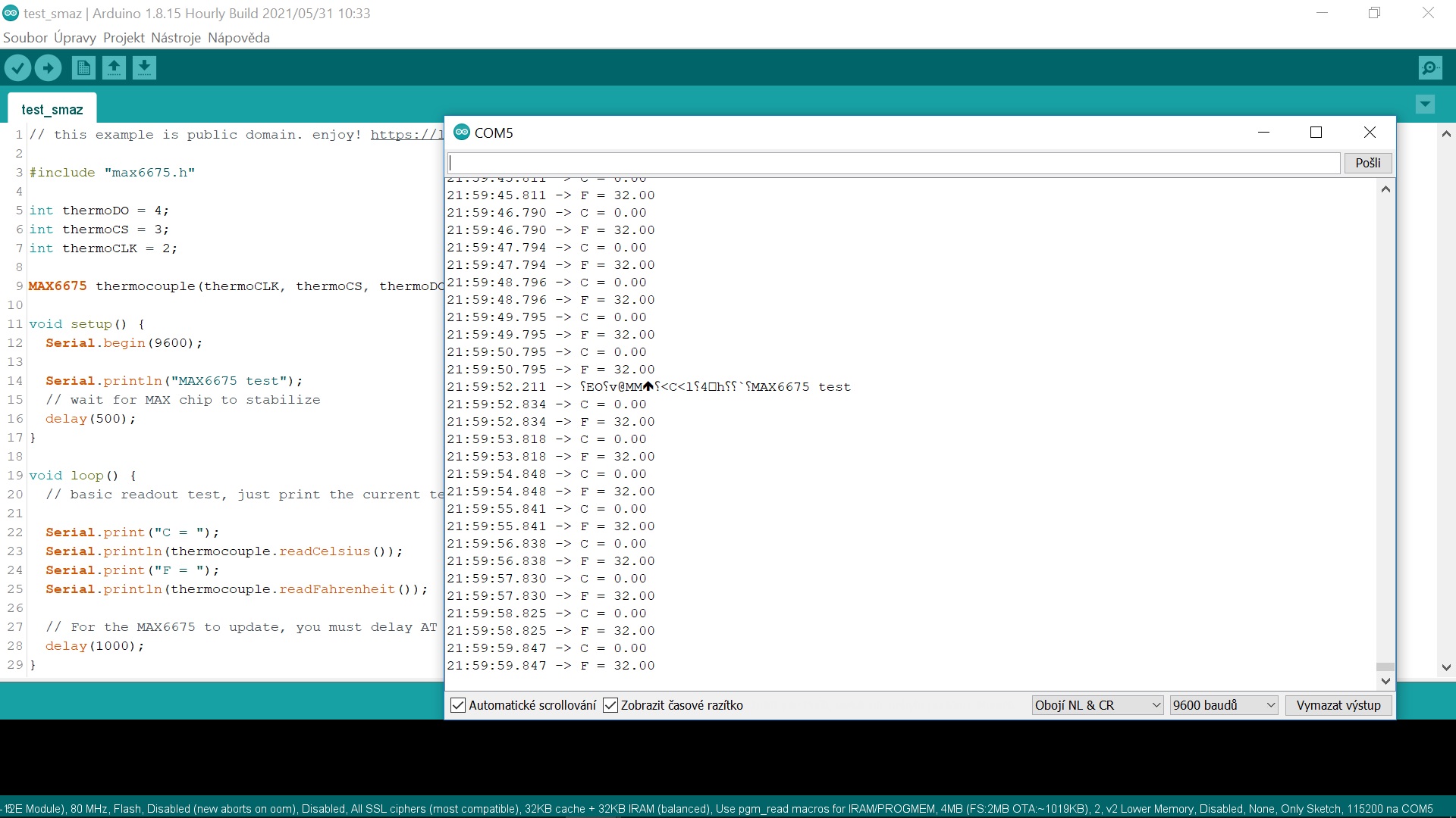 termočlánek s max6675 - komnikace s Nodemcu (ESP8266)