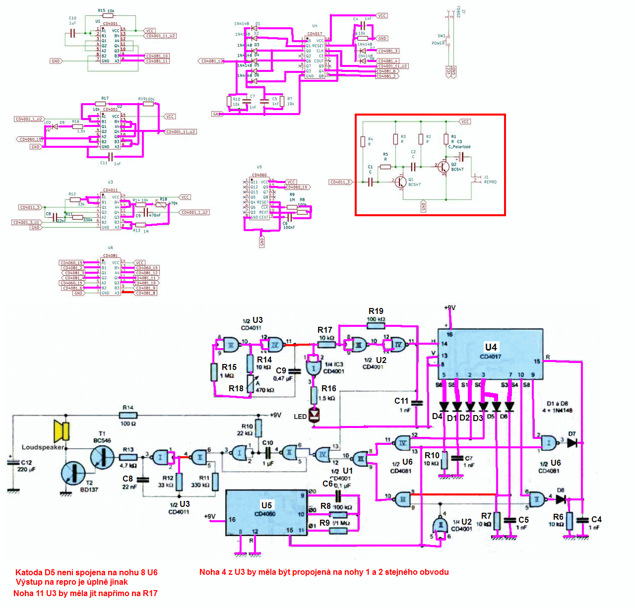 Zdar všichni. Potřeboval bych zkontrolovat jestli jsem předělal schéma z webu Train sound genrator. Z toho tam je obrázek zapojení