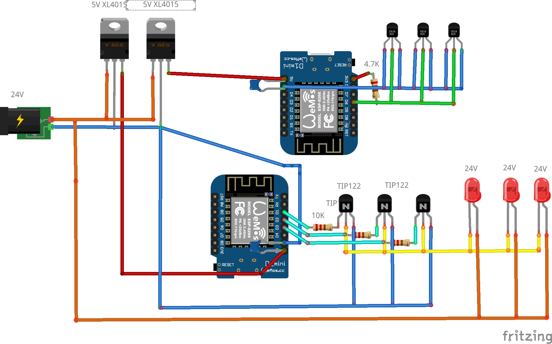 na ostatných wemos D1 mini mám pripojený iba jeden DS18b20 a tie niesu zarušene pri použití PWM na stmievanie LED dole je schéma zapojenia