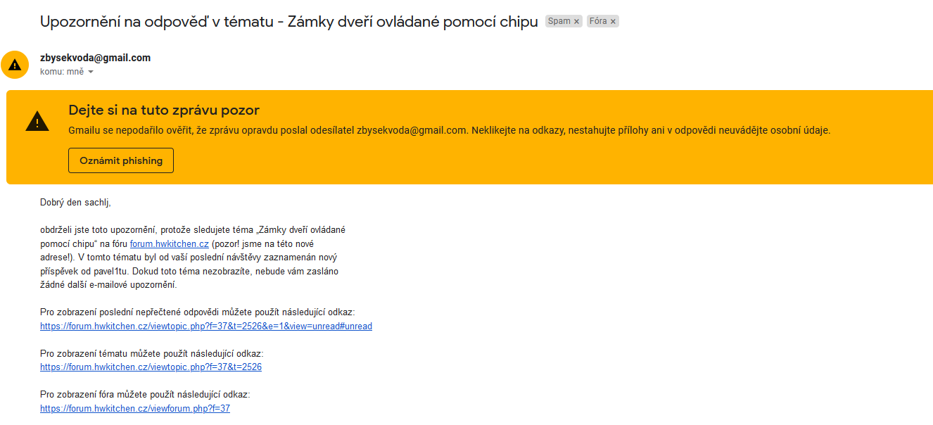 Není možné přeregistrovat odesílané emaily z tohoto fora na doménu hwkitchen.cz?