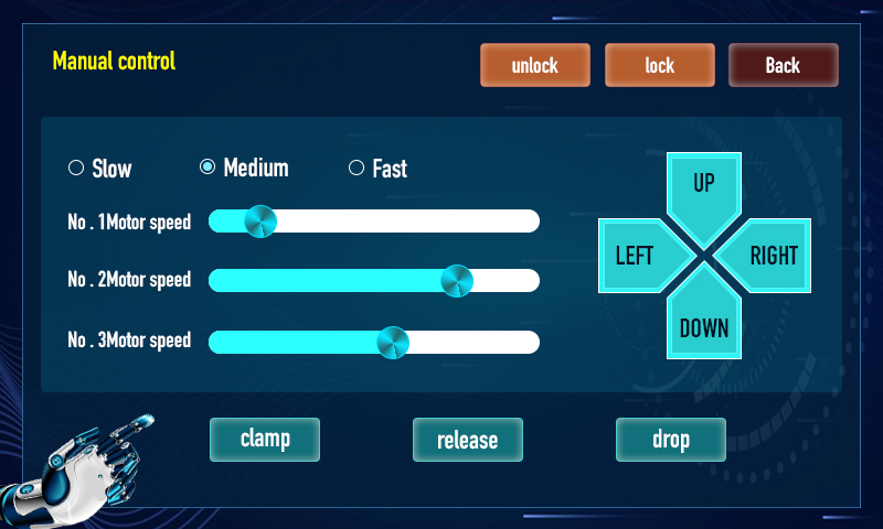Zde je grafické rozhraní mého robotického ramene.