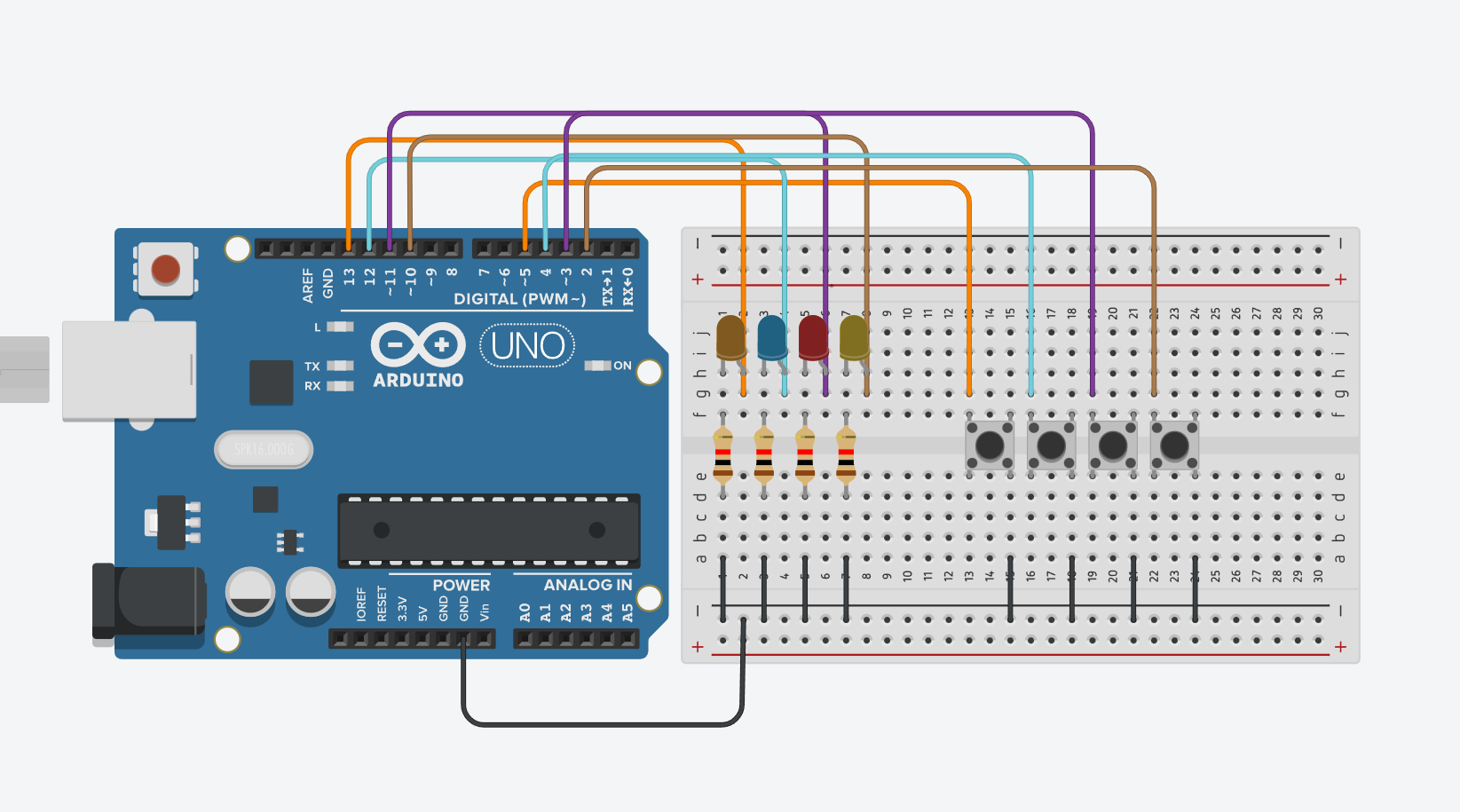 Hlavní smyčka tak cykluje 100x za sekundu. To je dostatečně rychlé na vyhodnocování stisku tlačitek.