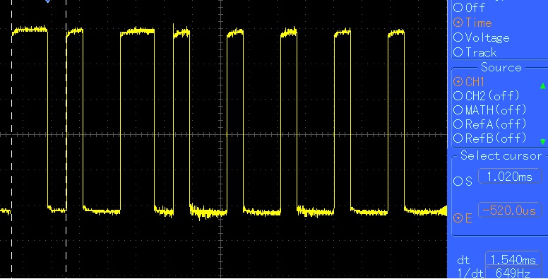 Délka dlouhého pulzu je 1ms HIGH, mezera 0,5ms LOW