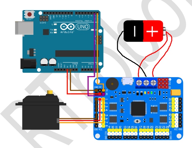Já bych čekal, že pro každé servo tam bude zem, napájecí napští a PWM (které řiká, kam to servo má být natočené). Ale to možná taky bude chtít nějaké minimální nastavení (dát všem servům natočení doprostřed, nebo tak nějak), kdoví, jak to ty servoboardy mají (asi jejich dokumentace :) ).