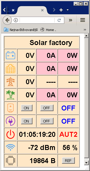 Mimochodem, ten obrázek je aktuální, ale ten 4kW měnič mu nedávno do mrtě vyhořel. Tak teď může jen zapínat a vypínat boiler.