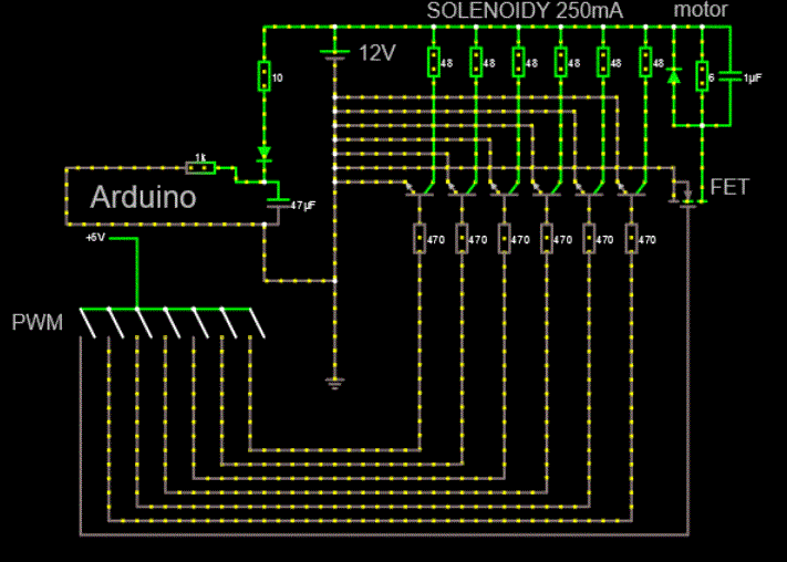 Jeste jsem si uvedomil ze ty solenoidy pri zavreni kopou zpatky vysoky napeti...dodelal jsem proto k nim paralelne diody