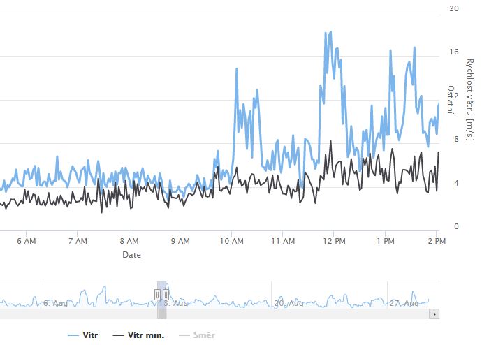 Vyhodnocuji minimální rychlost větru a průměrnou rychlost a není možné, aby se při měření projevoval takovým rozdílem.(Rychlost měřím 6s). Chyba se projevu pouze u určité rychlosti větru. Větší a menší rychlost je OK.