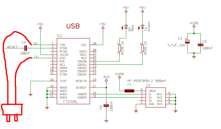 Podle mne to SH* je kostra USB konektoru. A ten R2PC mi taky nejde do hlavy. A proč zapojen mezi Piny 3 a 6? Převodník buď toto FTDI nebo CP2102 USB 2.0 to TTL UART.