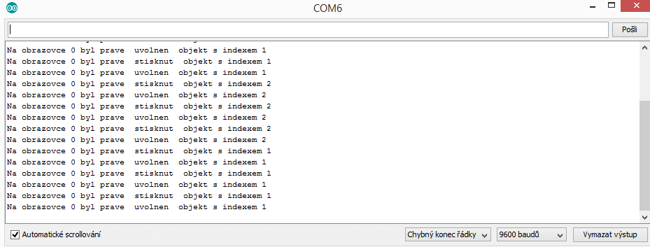Tím bude zajištěno, že se při stisku (a při uvolnění) budou odesílat sériová data do Arduina.