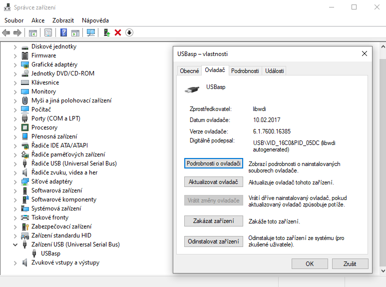 AVRDUDE mám (viz zpráva nahoře)... a driver bych řekl, že je nainstalovaný dobře
