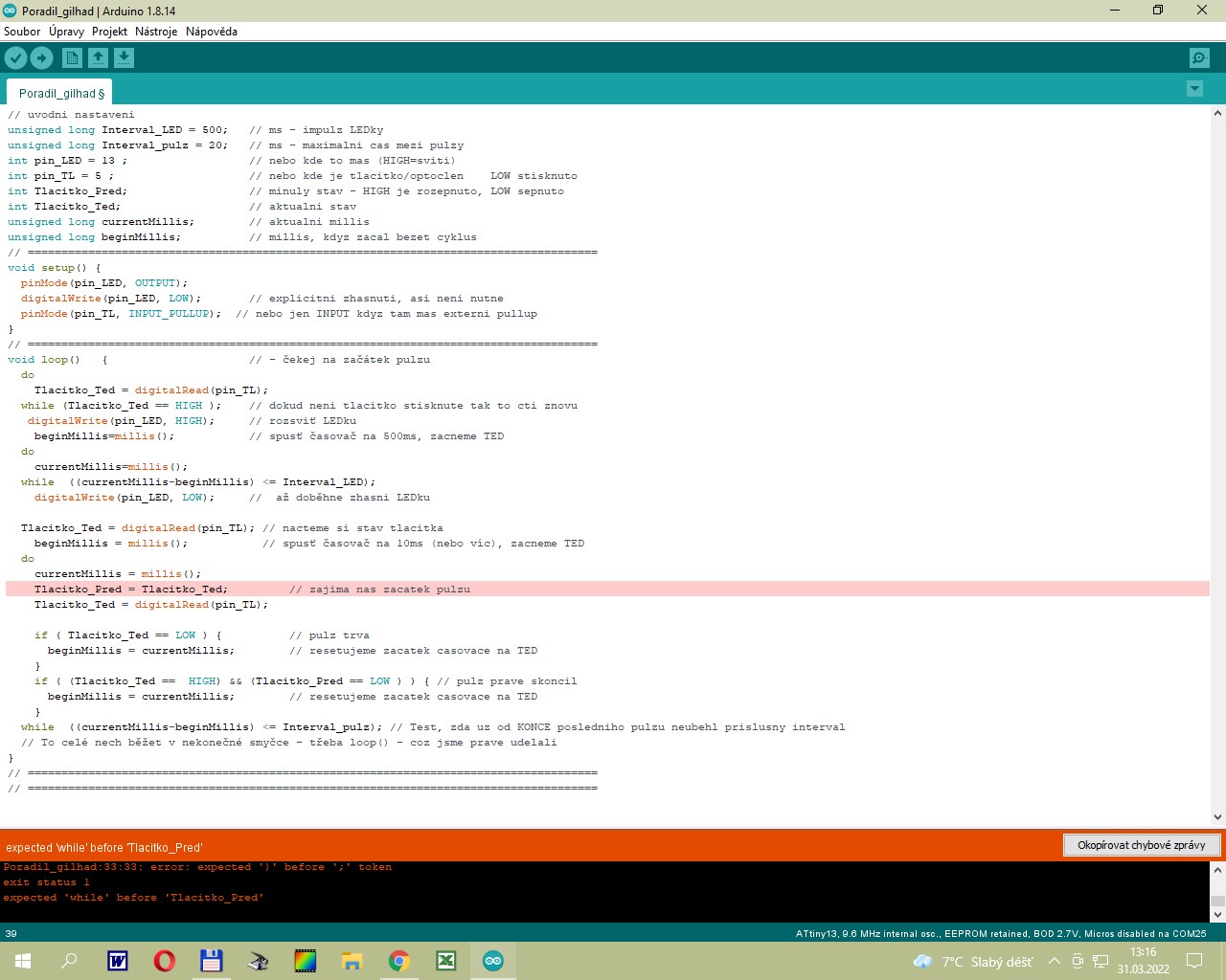 while (Tlacitko_TED == HIGH ); // dokud neni tlacitko stisknute tak to cti znovu