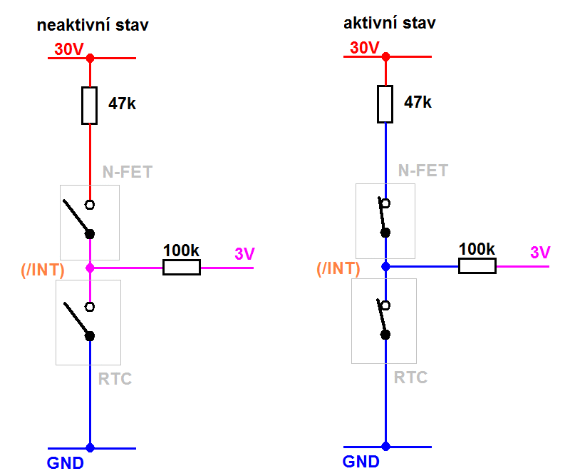 A naopak - když se /INT výstup rozpojí, tak se N-FET okamžitě taky rozepne.