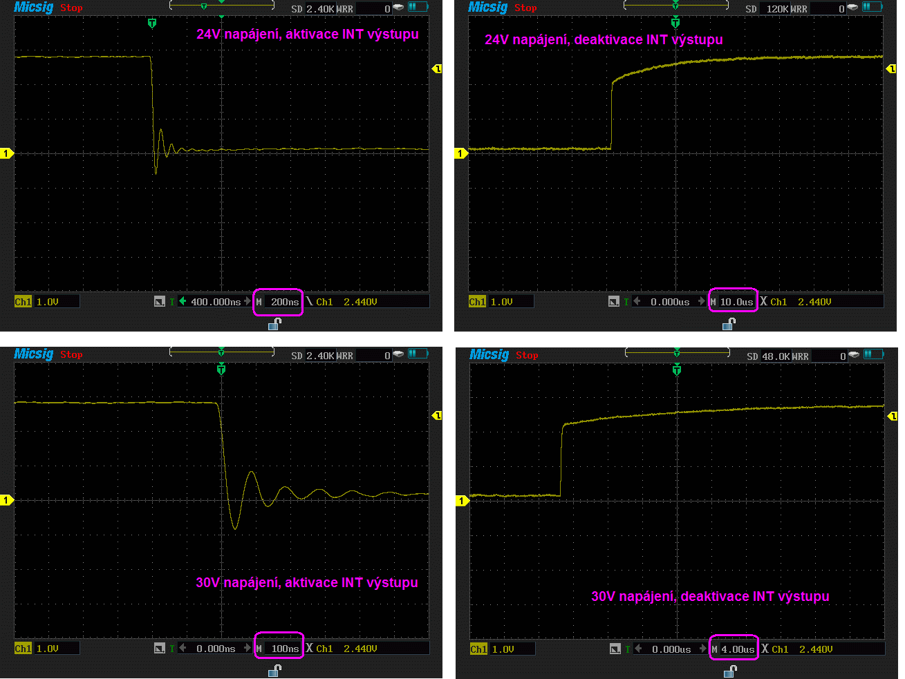 Pro zajímavost jsem zaznamenal osciloskopem i napětí na /INT výstupu při aktivaci a deaktivaci.