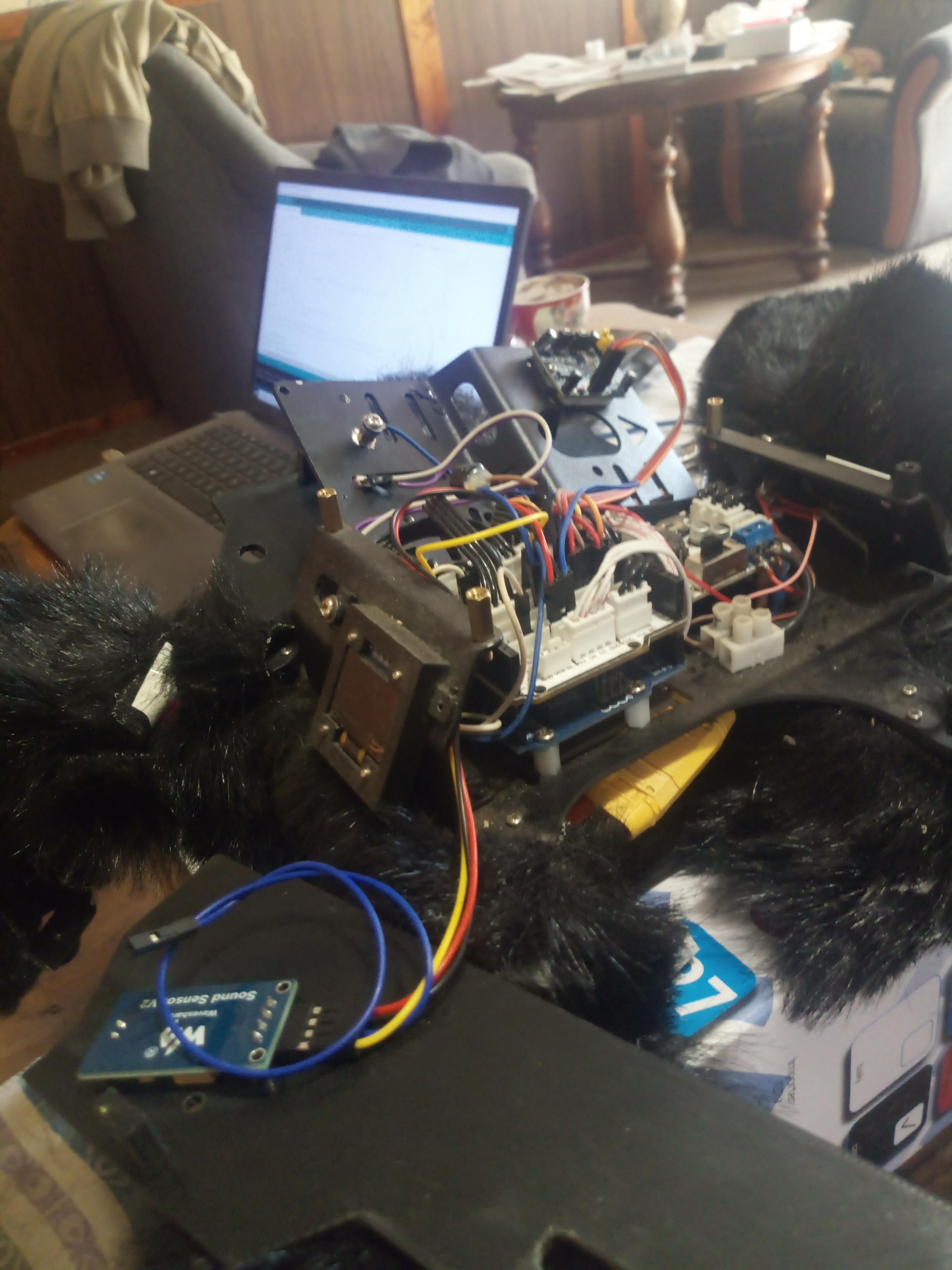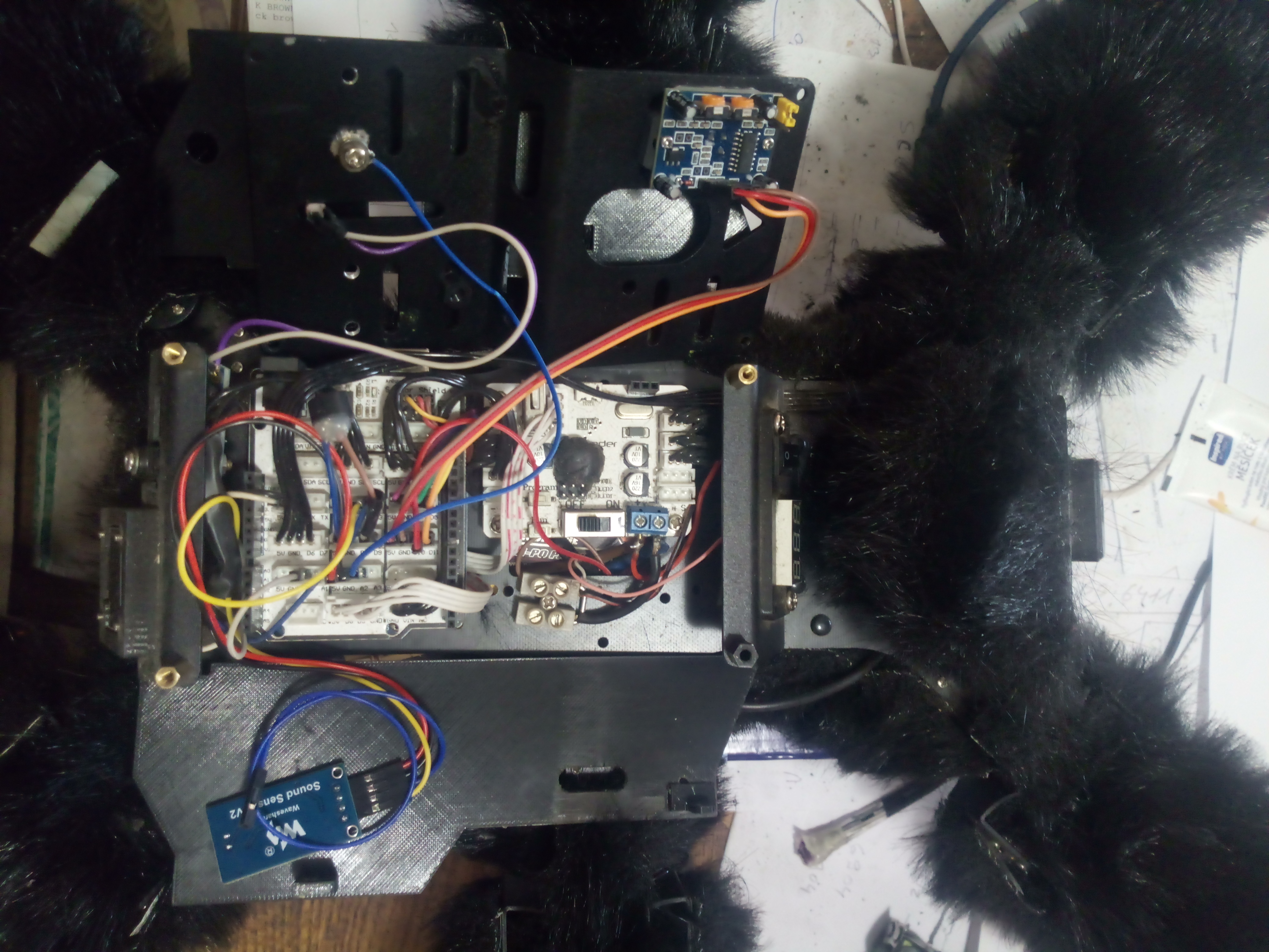 Tři vrstvy desek nad sebou a senzory kde se dá :D . Uplně dole v bříšku má velkokapacitní baterku (nejde vyfotit).