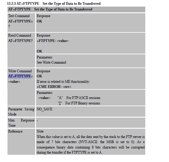 Tam je někde chyba krom příkazu AT+FTPTYPE=I který tam chybí a který tam dodám jenže v jakém formátu AT+FTPTYPE=I nebo AT+FTPTYPE="I" který je v manuálu