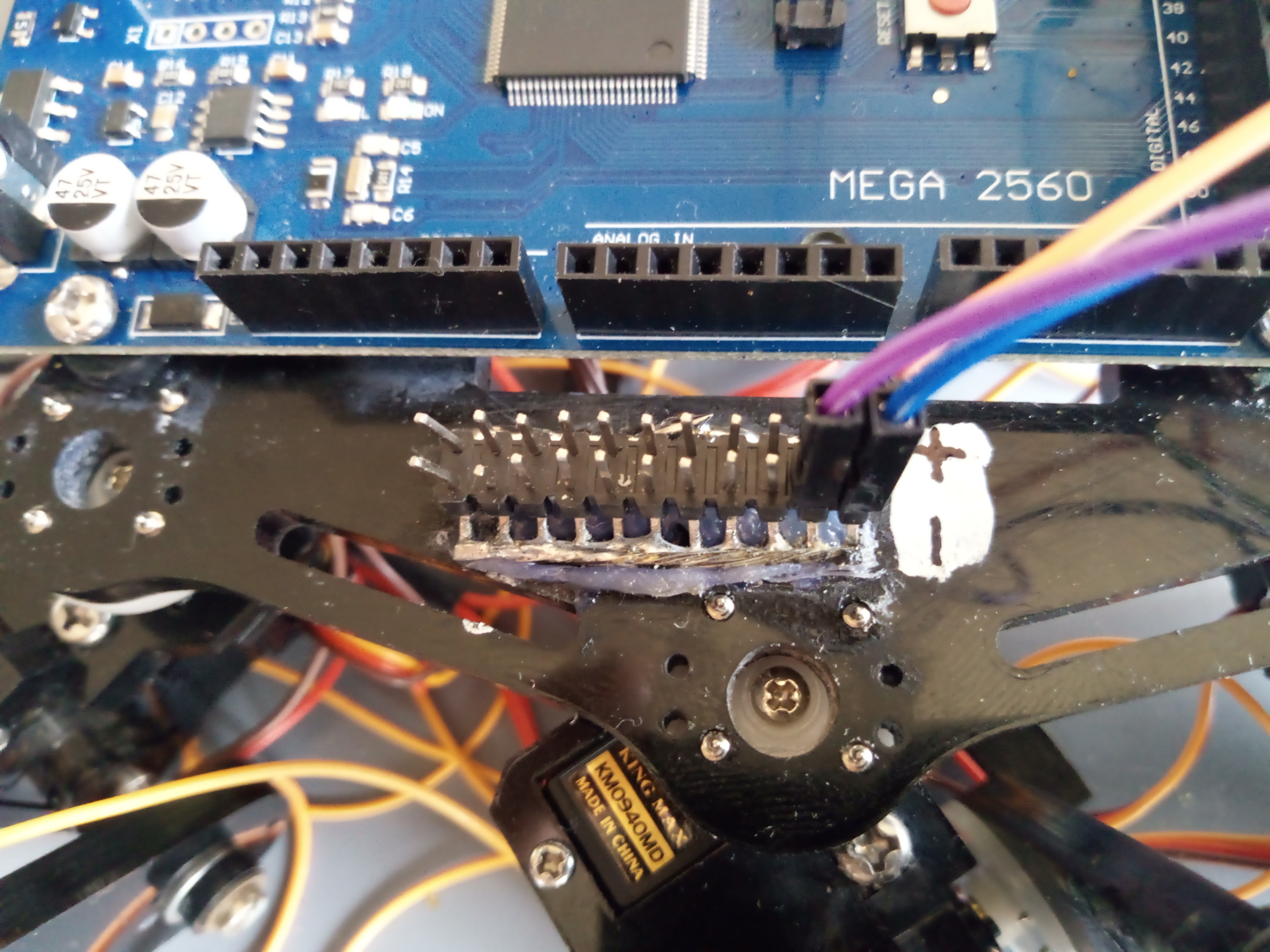 Další posun v řešení problému zapojení servoboardu. přívody gnd i (+) se mohou propojit (samo zvlášť). Vyvedu je do silných konektorů a pak budu propojovat jen signální. Zřejmě to budu muset rozdělit na 16 a 16 serv ale já jich tolik nebudu potřebovat.