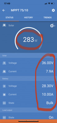 Zkus třeba tohle, pokud tam budou samé nuly když je připojen Victron, tak to funguje správně. Pokud tam bude 1.0 , 2.0, 3.0, 4.0 tak to data z Victronu nepřijímá. :D