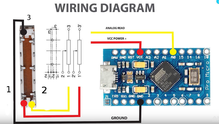 Ale narazil sem na problém s tím že ve videu je použit jiný potenciometr než ten co daný člověk zadal jako potřebné součástky do popisku a já si nemohu poradit jak pracovat s tím co mam já (v tomto se vůbec nevyznám)