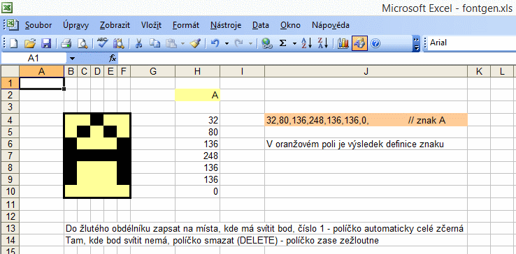 Kdysi jsem dělal něco podobného "klikacího" na definici zaků ve fontu 5x7 bodů.