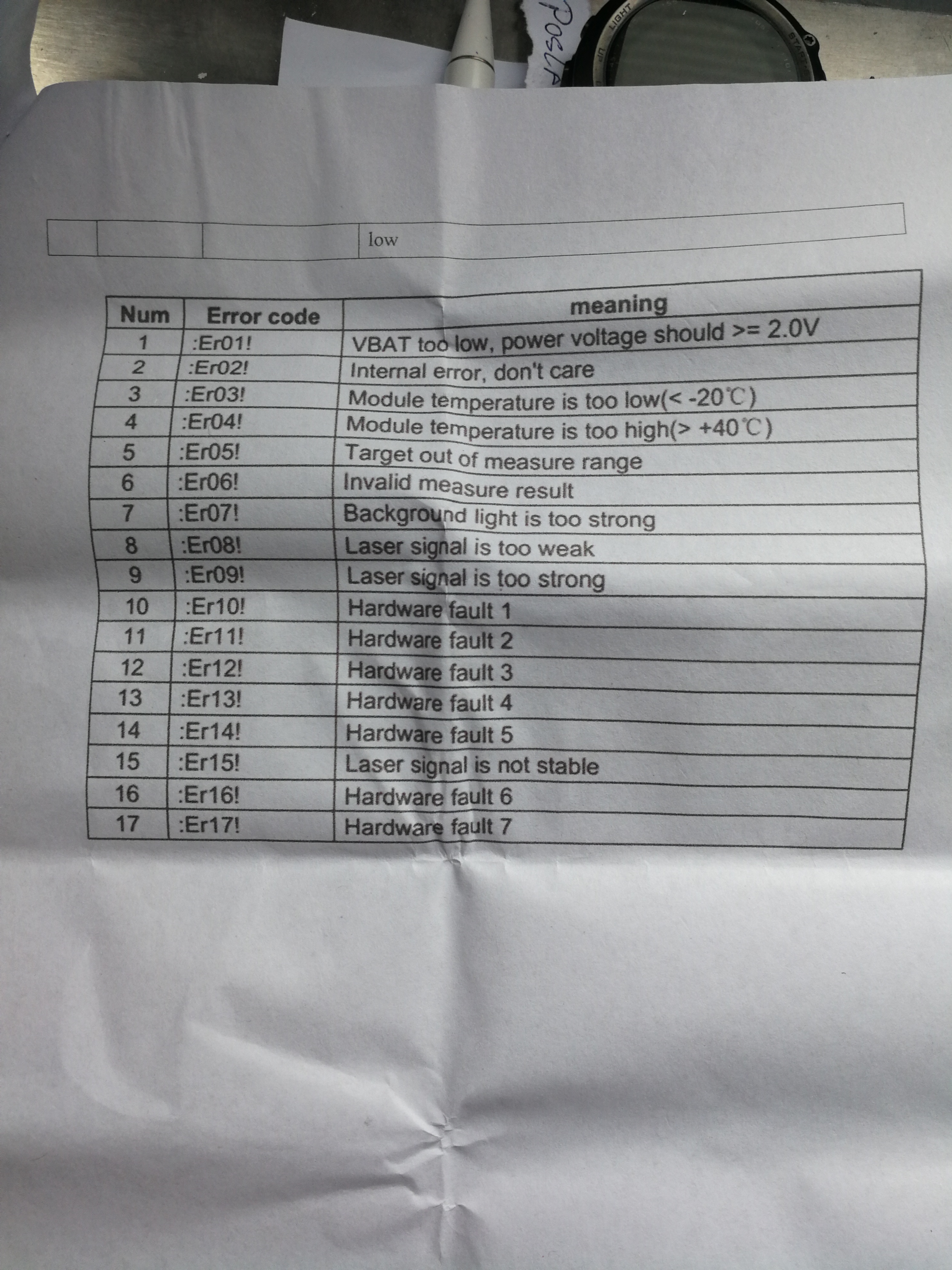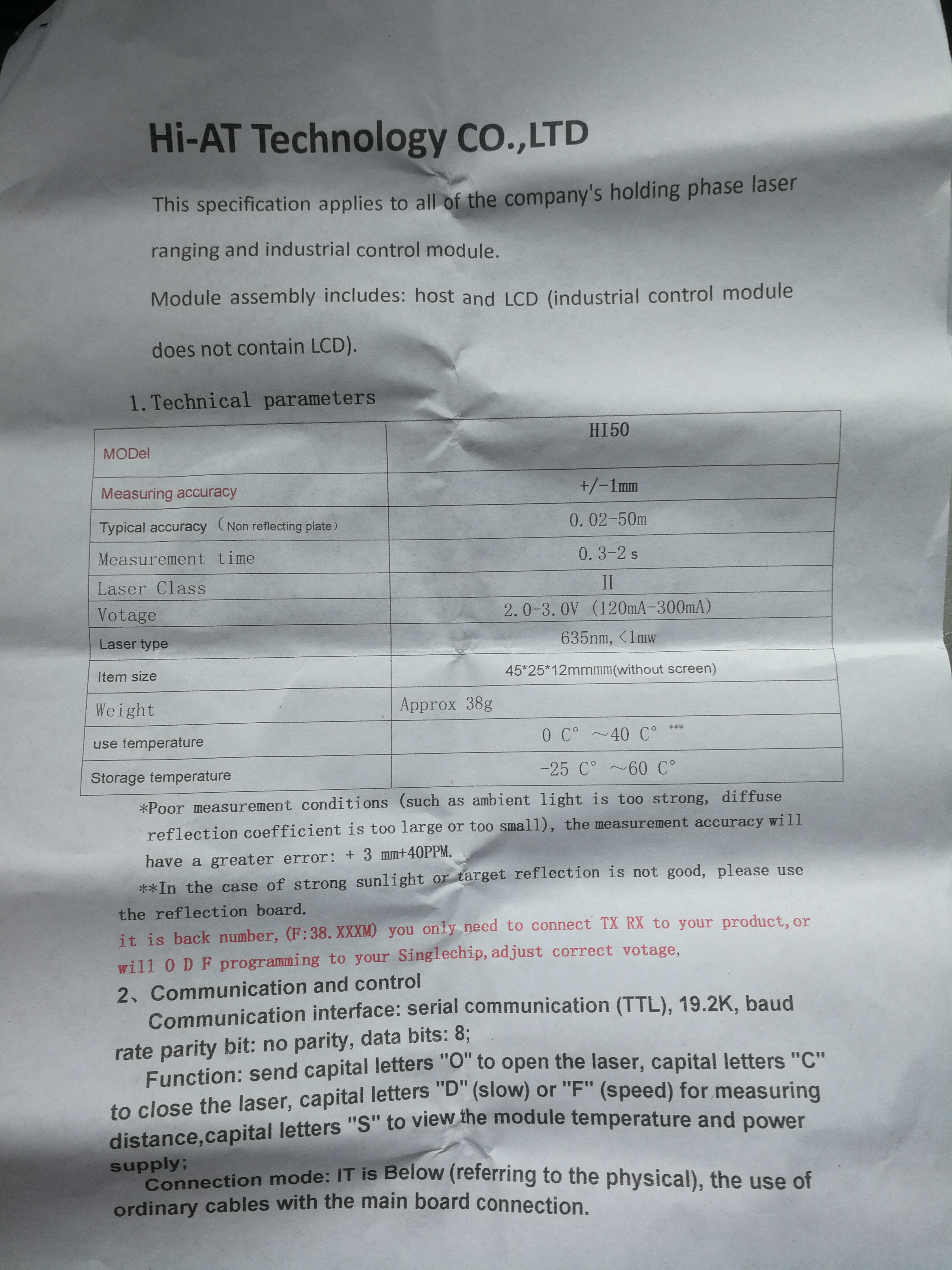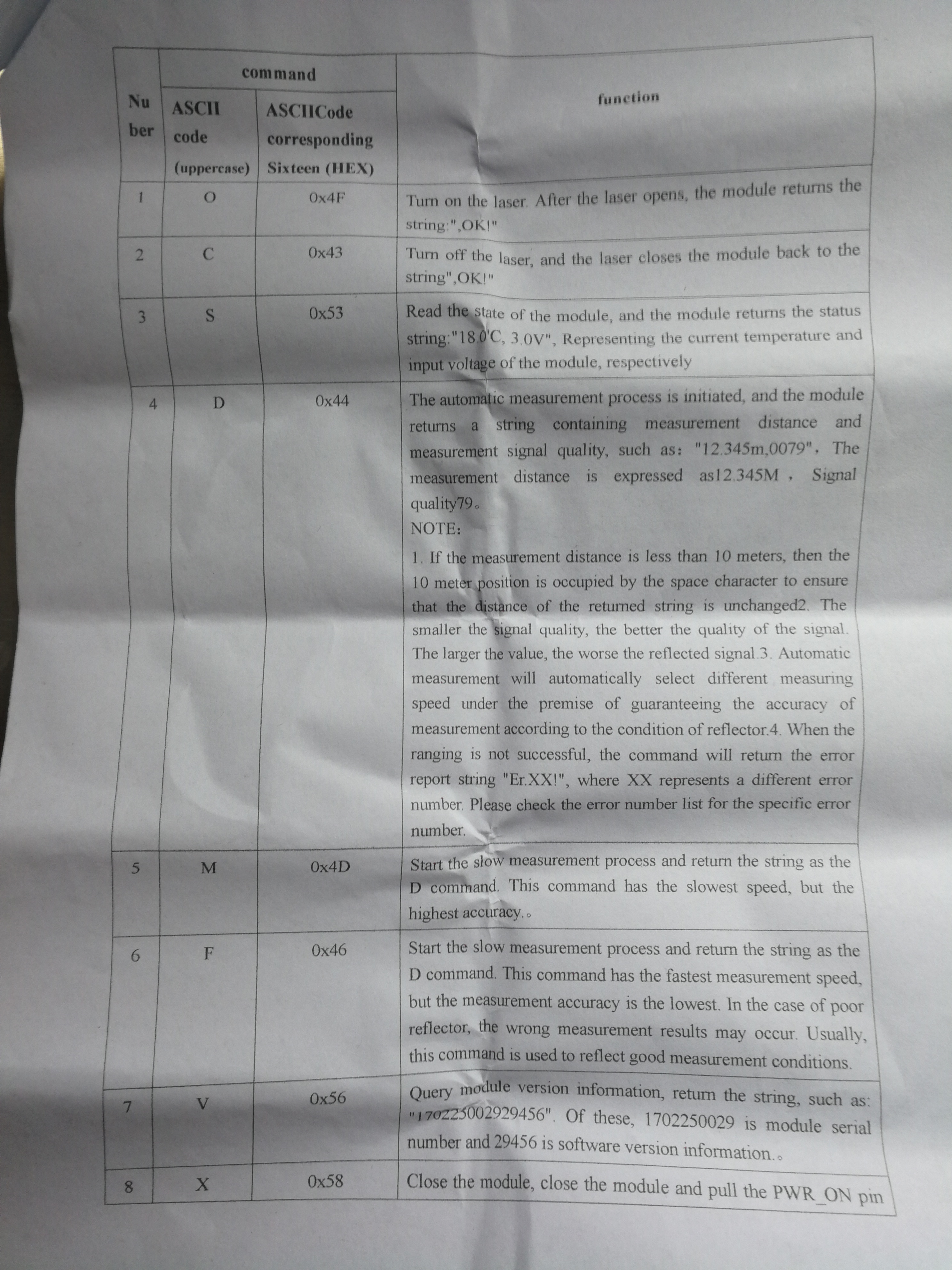 s tou voltazou je to tak ze som to mal najskor zapojene pomocou HW-0801 ale nejako to nereagovalo, ked som to zapojil na 3.3v napatie z arduina a rx a tx som zapojil napriamo do arduina tak po odoslani prikazu "D" alebo 0x44 sa normalne aktivoval laser, presne takto sa to spravalo aj ked som pouzit usb ttl prevodnik na pc az na to ze v pc som dostal namerane hodnoty citatelne