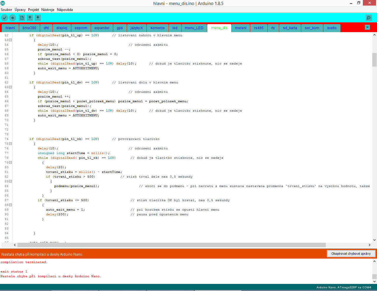 zrak slábne a mně čím dál víc vadí, idiotské barvy Arduino IDE. Červené písmo na černém podkladě a zelené písmo na zeleném podkladě (lišta záložek) mě opravdu doslova... štve.