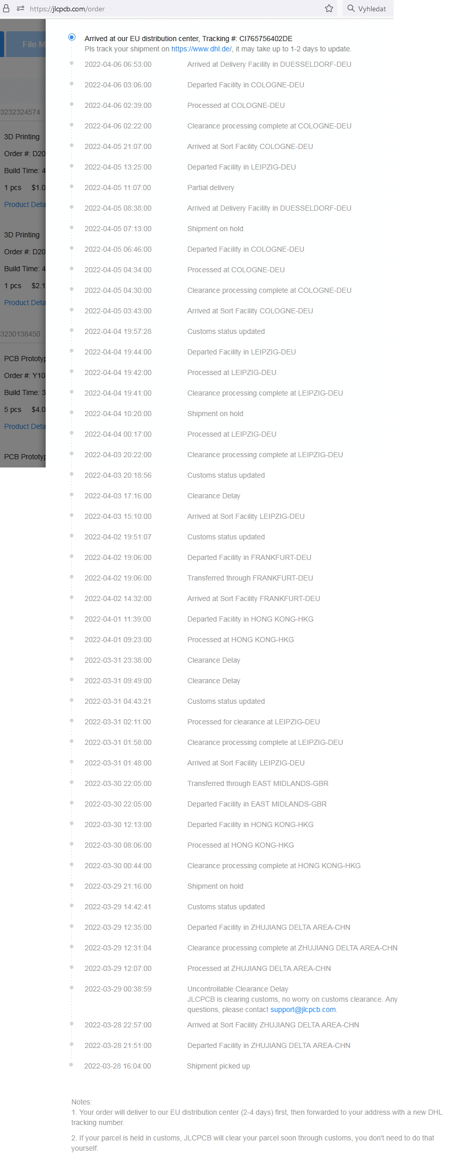 Dnes jsem objednával další desky a všimnul jsem si, že se JLCPCB přestěhovala do Německa.