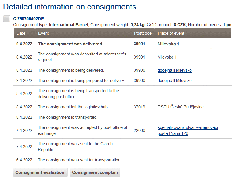 Při volbě Europacket to fyzicky doručila Česká pošta, ale šlo to přes německou DHL.