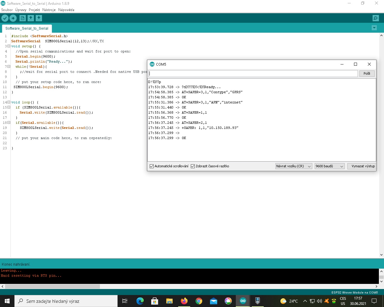 Dělám na ESP32 CAM program na modul SIM800 a potřebuji zpětnou vazbu, jak vypíšu do sériového monitoru IP adresu ? tento příkaz dá modulu SIM800 pokyn aby vypsal IP adresu a já potřebuji ji vypsat do arduino sériového monitoru její hodnotu