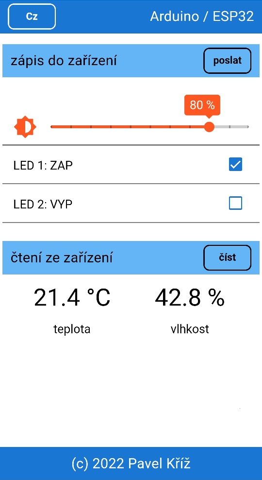 V projektu si budete periodicky či dle podmínek číst/zapisovat data a stejně tak i v mobilní aplikaci. Nabízím funkční aplikaci pro čtení a zápis dat, ale nenabízím kód ve Wiringu či jiném jazyku pro program běžící na vašem HW.