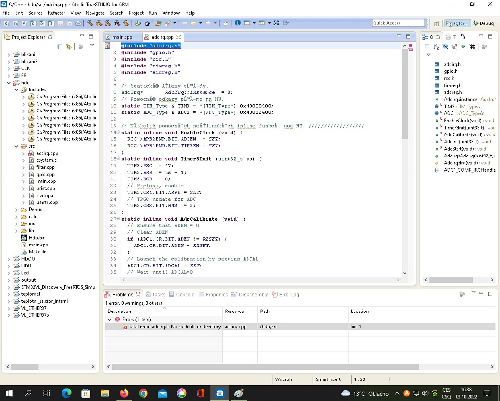 Kompilátor hlásí, že nemůže najít soubor "adcirq.h" ... hlavičkový soubor k "adcirq.cpp"