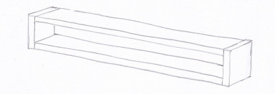Jako na obrázku police z internetu - dřevotřískový rám s dekorem (pochopitelně v jiných délkách) s tmavým plexisklem zepředu jako kryt samotných displayů.