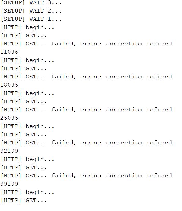 Tak nic :( Použil jsem i tvůj zmiňovaný program, pouze upravil wifi síť a http server. Pokud je server OK, pak je to taky OK /kód 400/. Ale pokud server není ok, opět čekání 7 sec (lze to vidět i na millis na obrázku) a poté chyba.