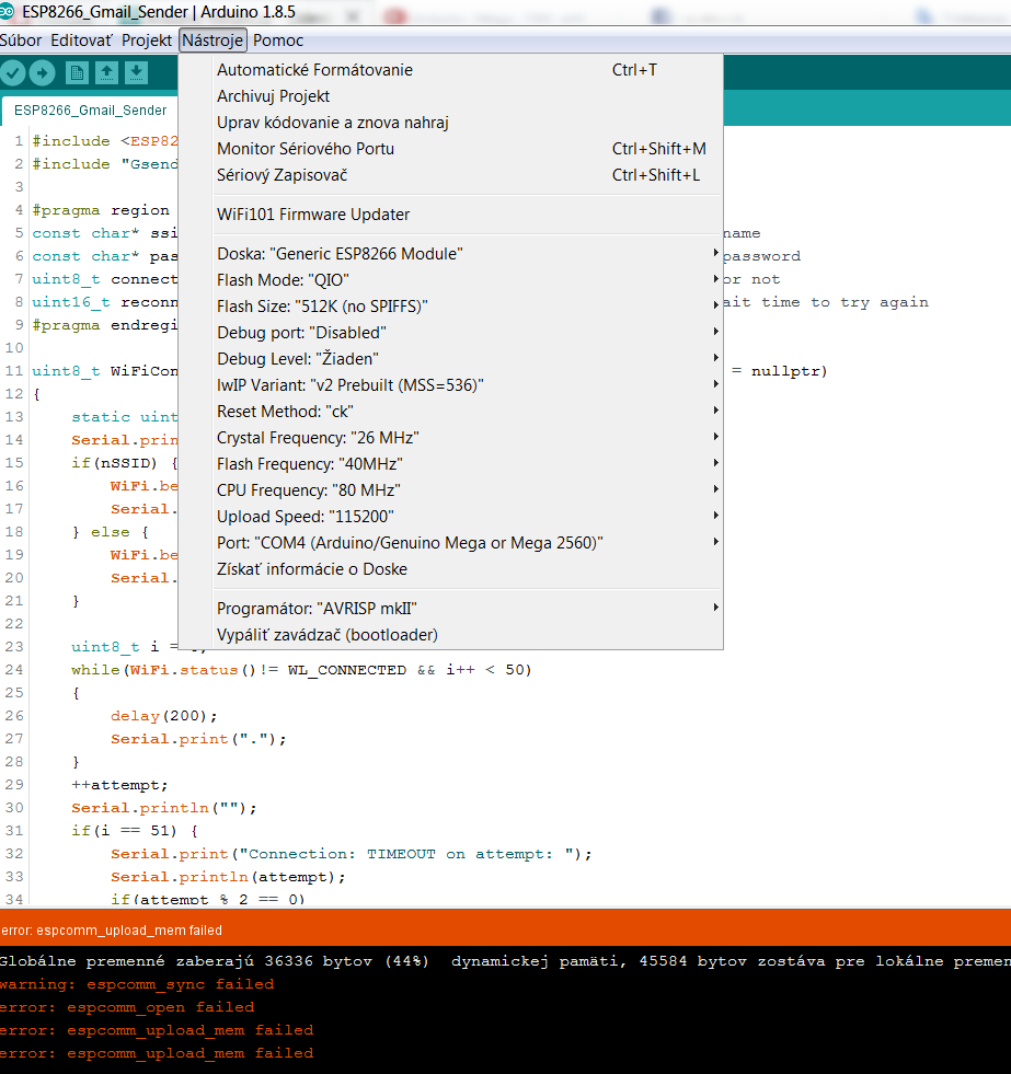 Aha tak vlastne ja musím program nahrať do wifi modulu.