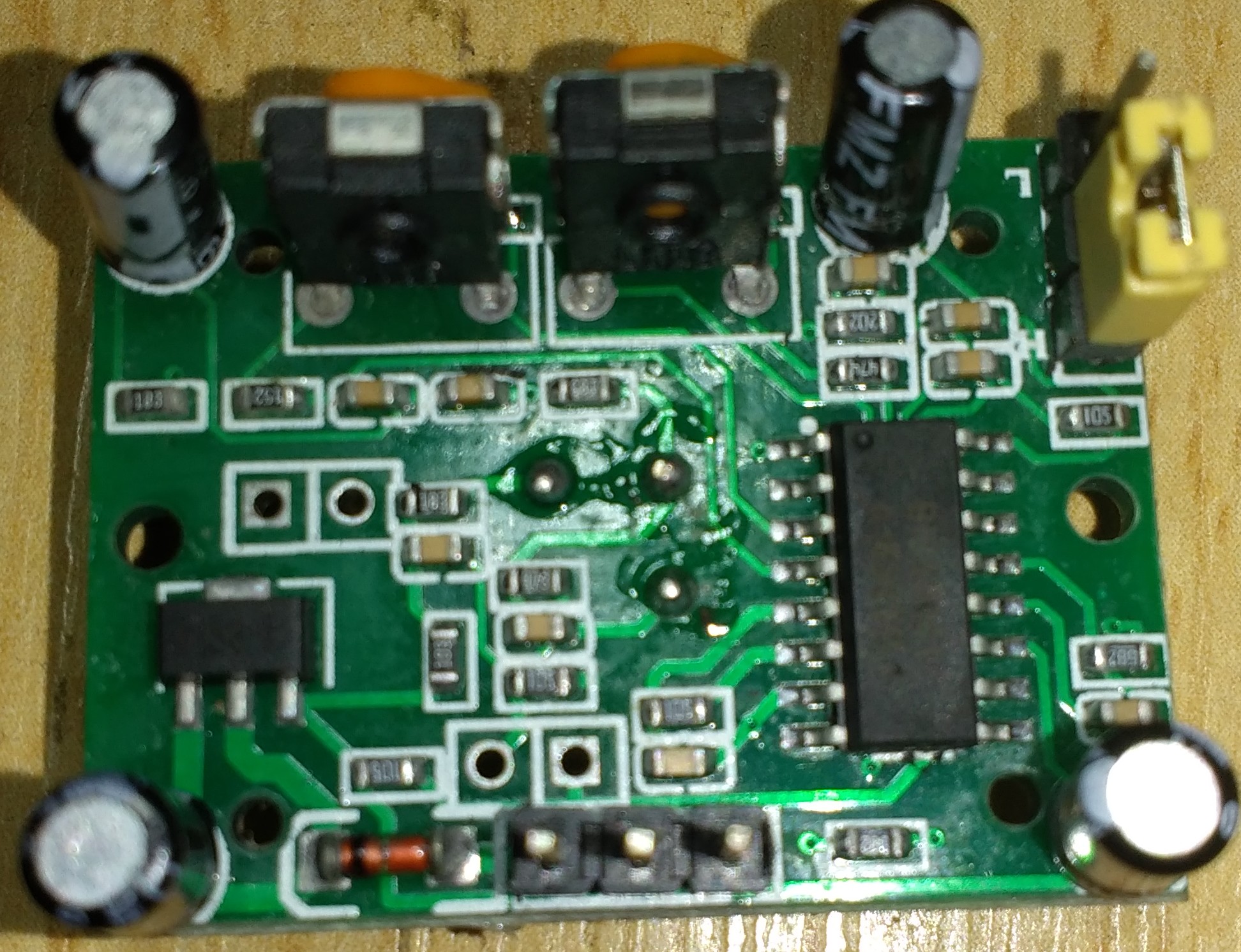 Podle tohoto obrazku a propoctu https://www.flickr.com/photos/majet/8472640541 je potreba zmenit kondiky C6 a C7.